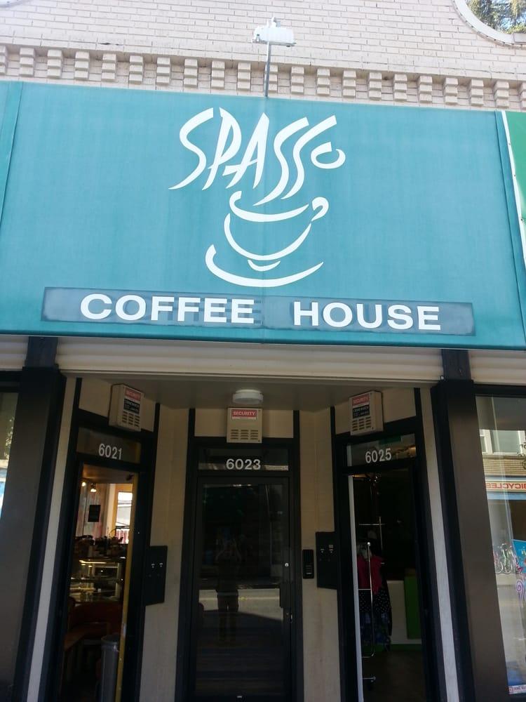We are not just a coffee shop. We have a large selections of tea and a large menu items for breakfasts, lunches, takeaways, and snacks. So don't just come to Spasso for coffee but you can come to Spasso and grab a meal or a snack or a smoothies too! We want to support your healthy life style by offering a nice assortments of vegan, gluten free, Kombucha , and Yerba Matte. We now have make fresh green smoothies! And always our famous Masala Chai latte. We serve only Organic Espresso.We have fresh made to order sandwiches, salads, wraps, bagels and gluten free bread. Along with a nice selection of pastries, candies, chips, and bottled beverages.We serve breakfast sandwiches all day long with bagels, croissants, or sliced breads. Now offering fresh made breakfast burrito!There are fresh baked chocolate chip cookies everyday. If we are out, please ask as we can generally have it available in about 15 minutes.We have items available for gifting: boxed chocolates, mugs, bagged coffee bean (we grind for free), tea, gift certificate in $10 and $20 denominations and our popular own masala chai kit. Our masala chai kit is only available upon request.