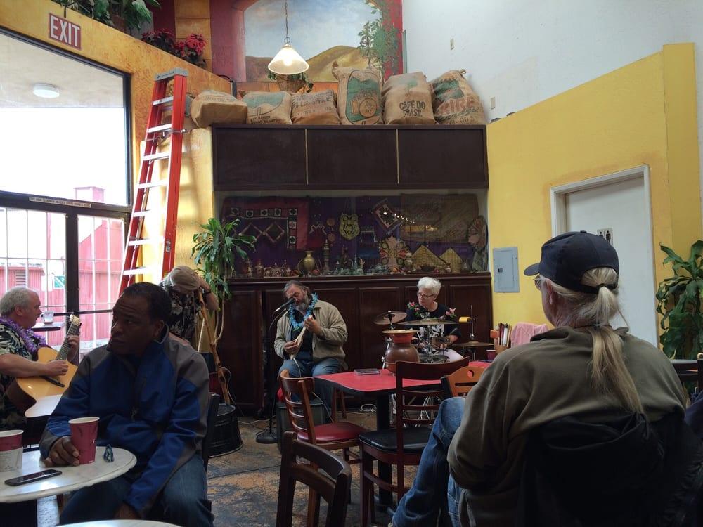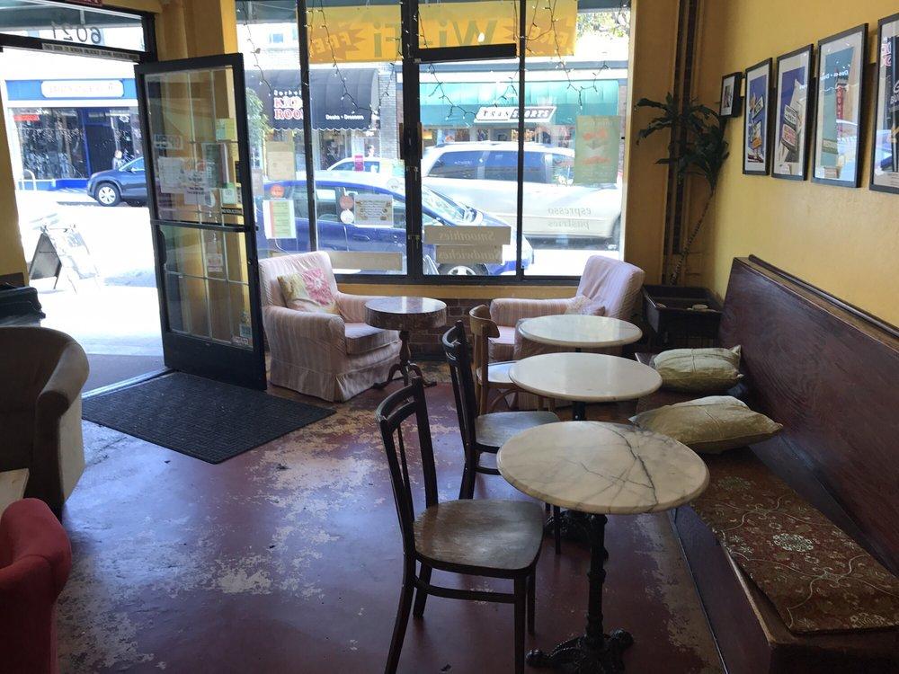 Great place, very cozy and simple. My favorite on College Ave. Some perks include: day old pastries for $1, free newspapers, comfy chairs, and always some interesting music playing. There was even live music a couple Sundays. I think the only reason it doesn't get crowded is because it feels a little hidden as it doesn't have an eye-catching store front. But anyone who doesn't give it a try is missing out.